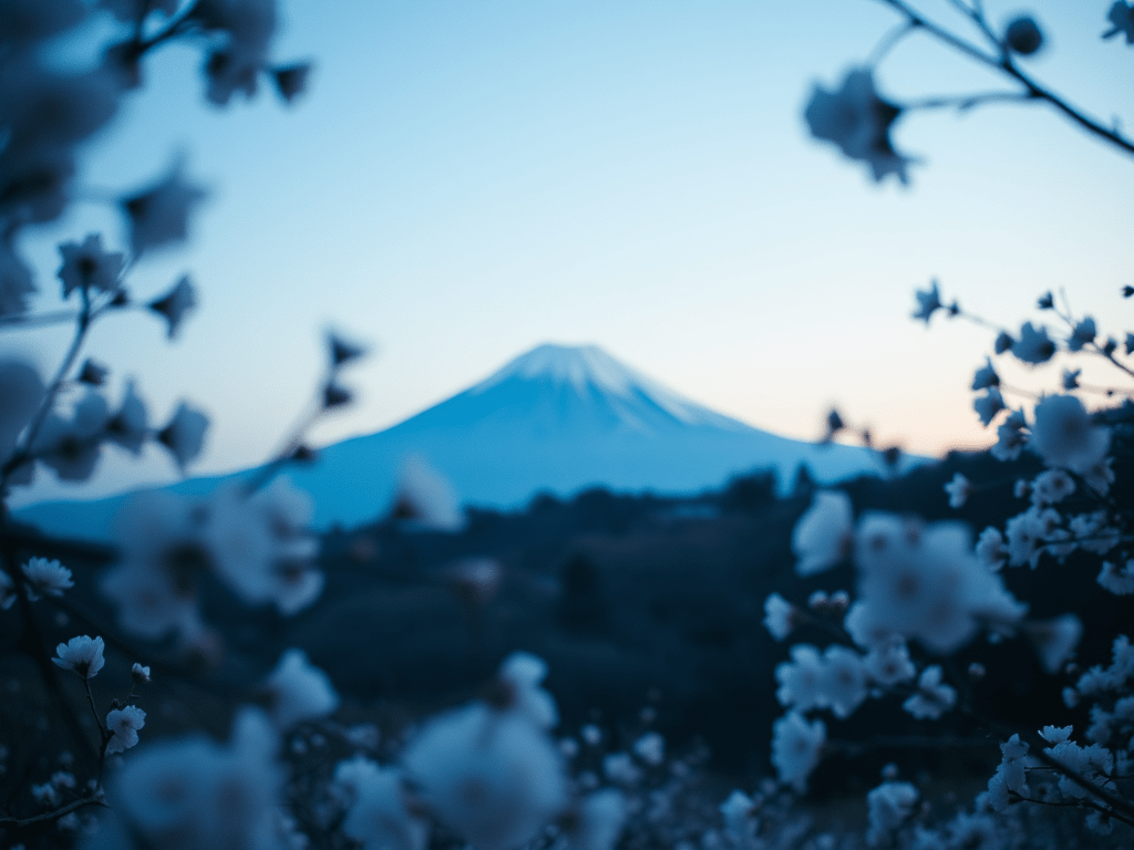 La brume enveloppera de son châle les épaules délicates et robustes du Mont Fuji, là où règne la sérénité, brille la lune et filent les étoiles derrière la branche délicate du cerisier en fleurs.